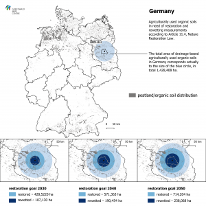 Image: Distribution of organic soils in Germany and schematic representation of the restoration objectives in accordance with the Restoration Ordinance Art. 11.4 at present