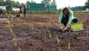 31/07/2020 To provide purified water for irrigating Sphagnum farming sites OPTIMOOS project now planted filter basins with a total size of 3,200 m² with cattail and reed. This is intended to promote Sphagnum as the target species , but at the same time all three paludiculture plants produce raw material for horticultural substrates. In the joint project OptiMOOS the four partners (Universities of Greifswald, Rostock and Oldenburg, Lehr- und Versuchsanstalt für Gartenbau Hannover-Ahlem) are researching the optimisation of Sphagnum farming with regard to water management, climate balance, biodiversity and product development. It is funded by the Ministry for Environment, Energy and Climate Protection of Lower Saxony and the European Regional Development Fund (ERDF). The OPTIMOOS-project was launched in 2019, but peat mosses have been successfully cultivated on 14 hectares at the peatland ‘Hankhauser Moor’ (near Oldenburg, Lower Saxony) since 2011.